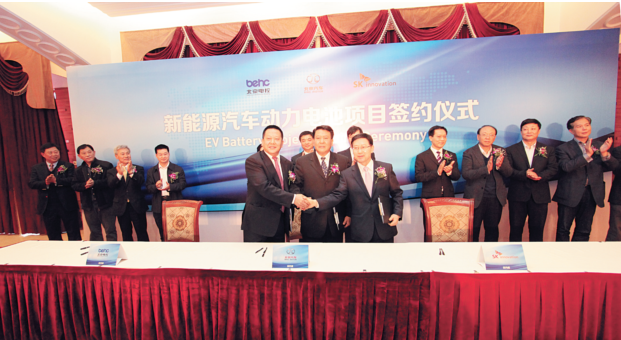 新能源汽車產業是中國重點發展的戰略性新興產業,在北京市產業規劃中明確提出了要加快發展新能源汽車產業,在全國率先形成行業影響和示范效應。在北京市委、市政府的領導下,北汽集團與北京電控結成戰略聯盟,充分發揮北汽的整車制造優勢和北京電控的電子技術優勢,在打造北汽世界一流、國內領先的新能源汽車產業的過程中,形成高端電池及先進成組技術的配套能力。為進一步加強動力電池相關領域的技術研發,雙方積極尋求具有世界先進水平的動力電池企業進行合作。經過幾十輪的交流與考察,最終與韓國SK Innovation達成戰略合作意向性共識。